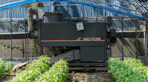 ハーブにとって冷害は天敵。農園では温風暖房機も完備でハウス内をデリケートなハーブ達の育つ環境を維持します。