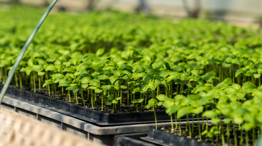 発芽し、葉をつけたバジルの苗です。ここから小さな小さなマス目をひとつずつ確認し、間引きしてゆきます。